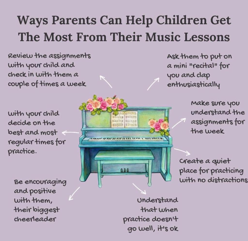 - Arrive on time with all music books and materials needed for the lesson.